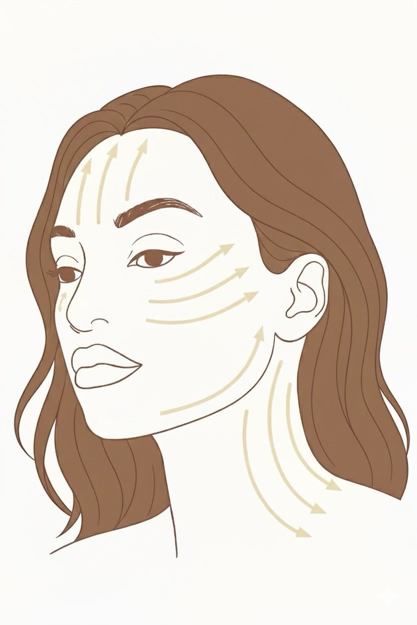 Tip: Always glide in upward and outward motions to support circulation, lymphatic drainage, and a naturally lifted, radiant complexion.